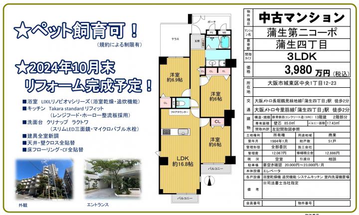 | 交通機関 | 大阪メトロ長堀鶴見緑地線「蒲生4丁目」駅 徒歩 2分分 |